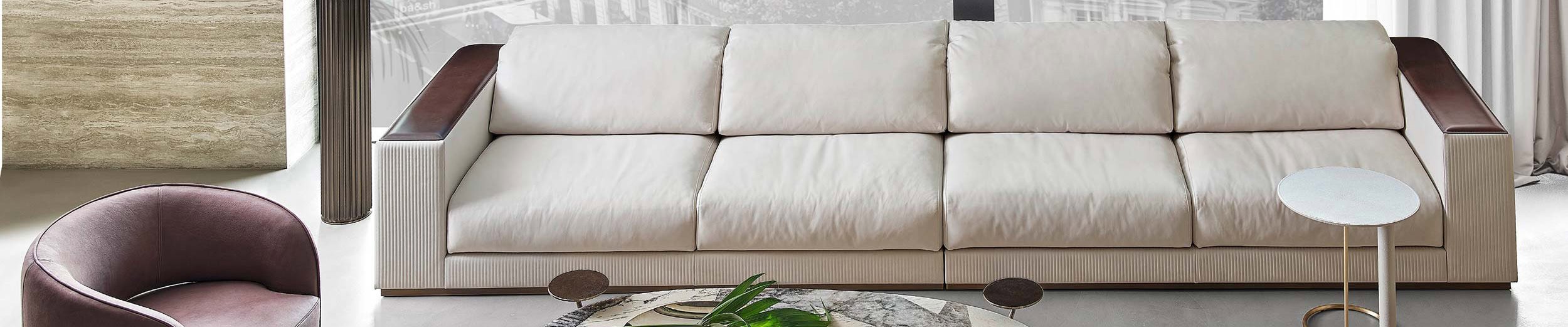 Nella Vetrina’s collection of sofas and sectionals are handcrafted in Italy, defined by architectural composition and a disciplined approach to proportion. Each design is conceived to articulate space—modular elements extend with intention, allowing for configurations that reflect both the physical and atmospheric needs of a room. Upholstery options include a curated selection of fine leathers and fabrics, chosen for their texture, tone, and enduring elegance. Custom dimensions, materials, and arrangements are developed in close dialogue with each project’s design language. To explore bespoke Italian sofa and sectional solutions, our design team is available to consult on every detail.